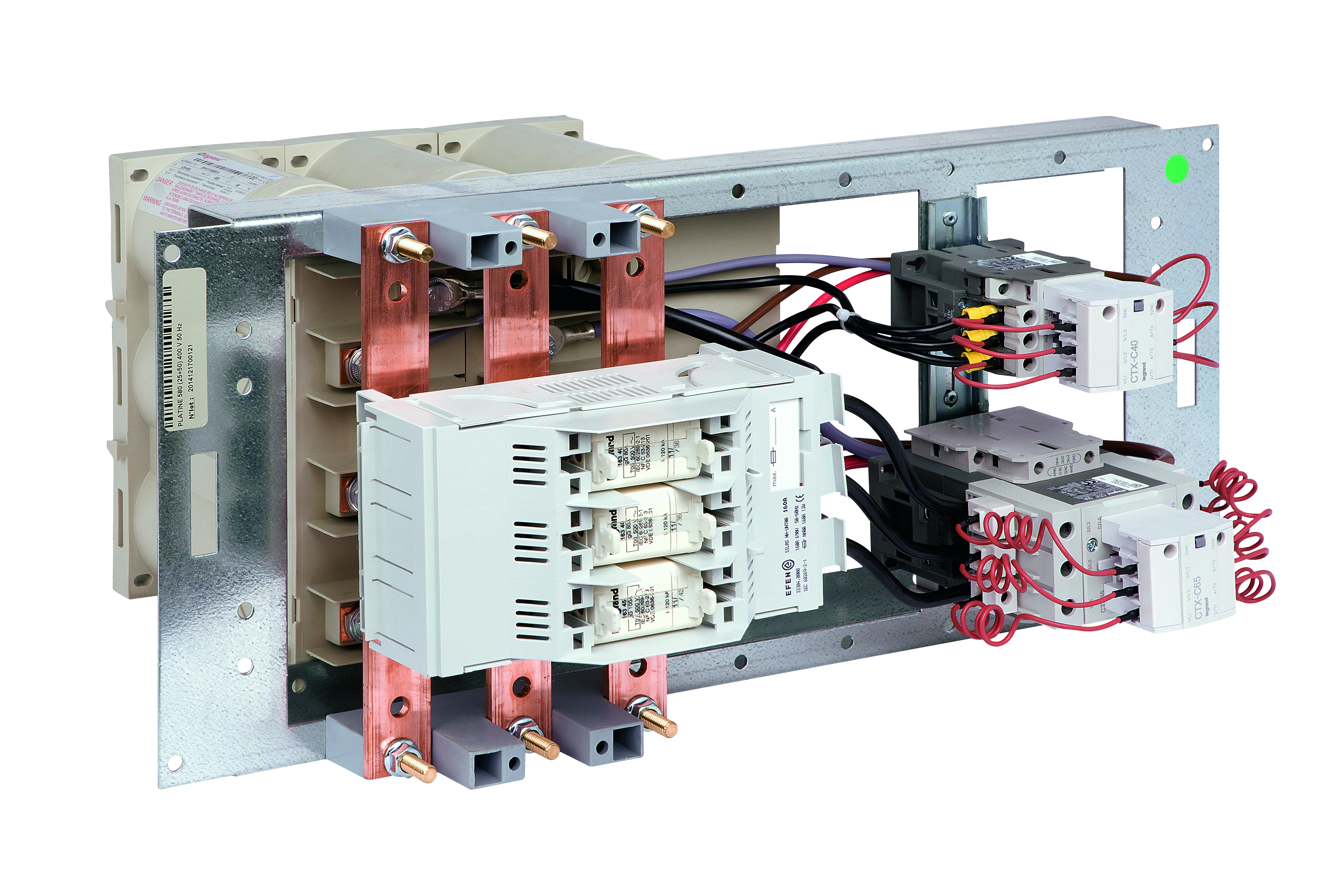 Rack destiné à être intégré dans une armoire de compensation automatique, intégrant un condensateur Alpivar³, un contacteur, un jeu de fusibles, un ensemble de jeu de barres cuivre et son support en acier