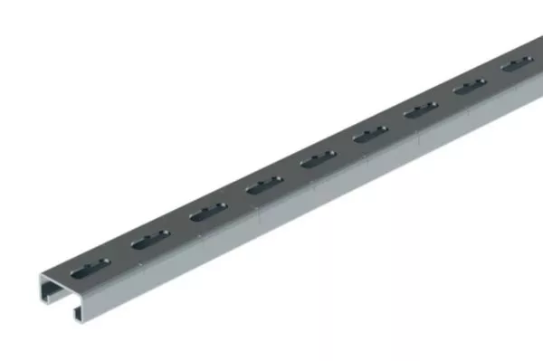 Rail avec oblongs trou de serrure R21S pour chemins de câbles fils Cablofil - pour fixation plafond de charges lourdes en balancelle ou pendard - épaisseur 2mm et longueur 3m - finition ZnMg