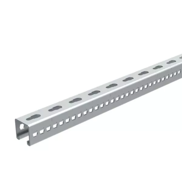 Rail avec oblongs trou de serrure et perforation latérale R41SP pour chemins de câbles fils Cablofil - pour fixation plafond de charges lourdes en balancelle ou pendard - épaisseur 2mm et longueur 3m - finition GC