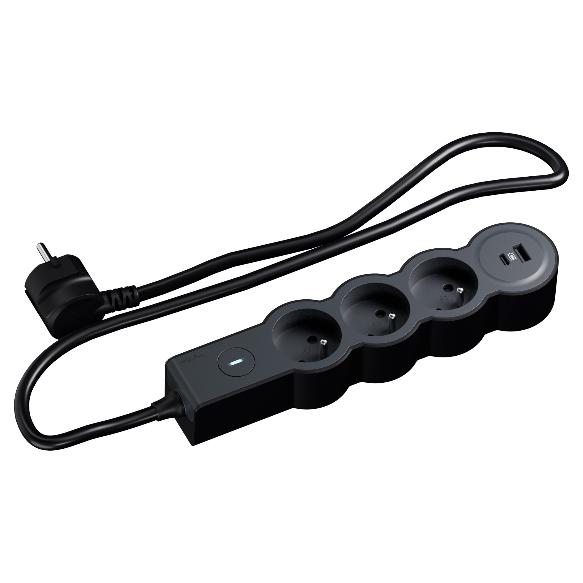 Rallonge multiprise 3 x 2P+T 16A 230V-3680W + prise USB A/C - avec interrupteur ON/OFF - cordon 1,5m - Noir
