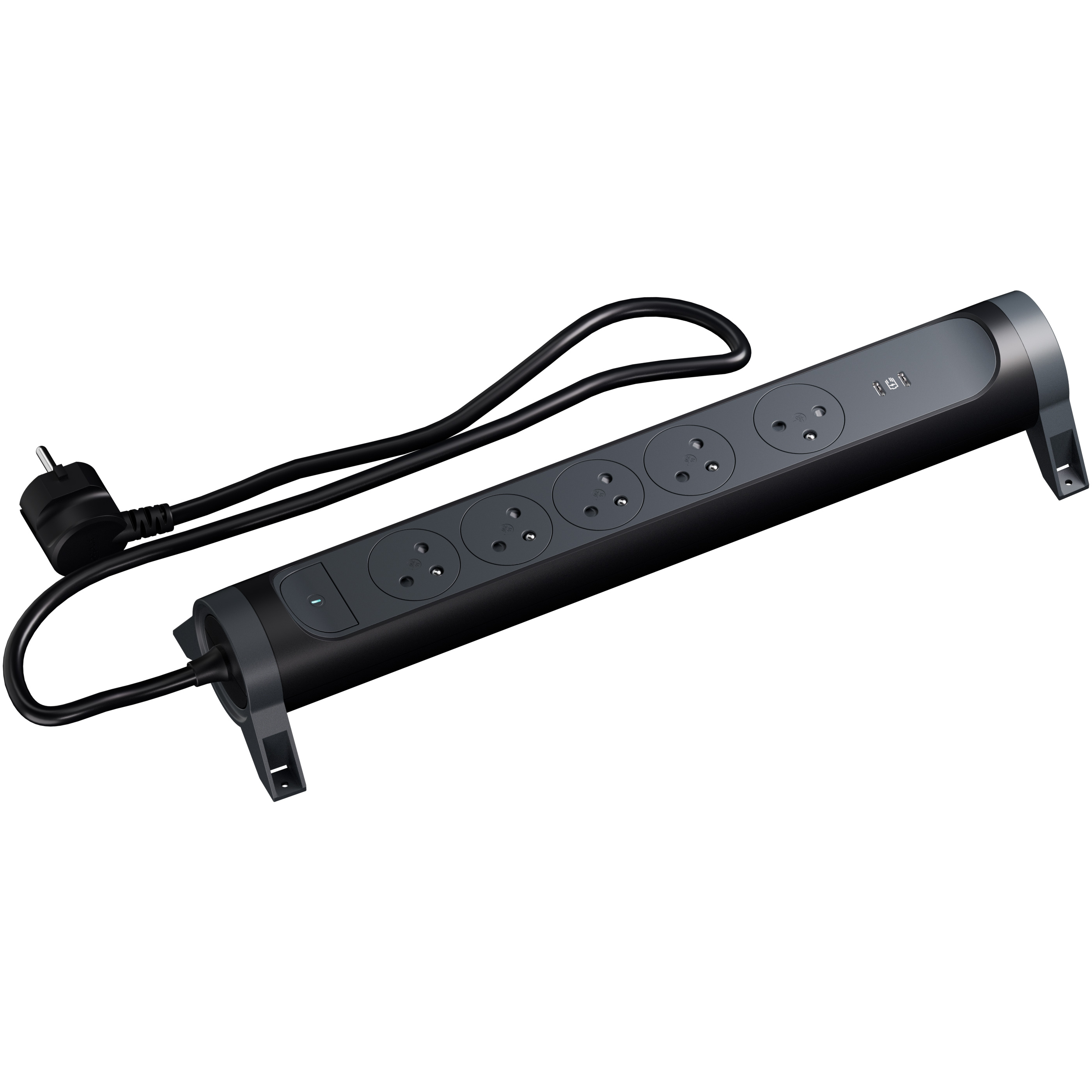 Rallonge multiprise 5 x 2P+T Surface 16A 230V-3680W + double prise USB C - cordon 1,5m - Noir
