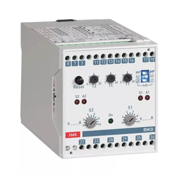 Relais de mesure type RM3I pour courant alternatif triphasé - 75x100mm - Entrée 5A - Alimentation auxiliaire 24VDC