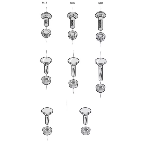 Sac de 100 boulons poêlier avec écrous BTRCC 6x12 - finition Inox 304L