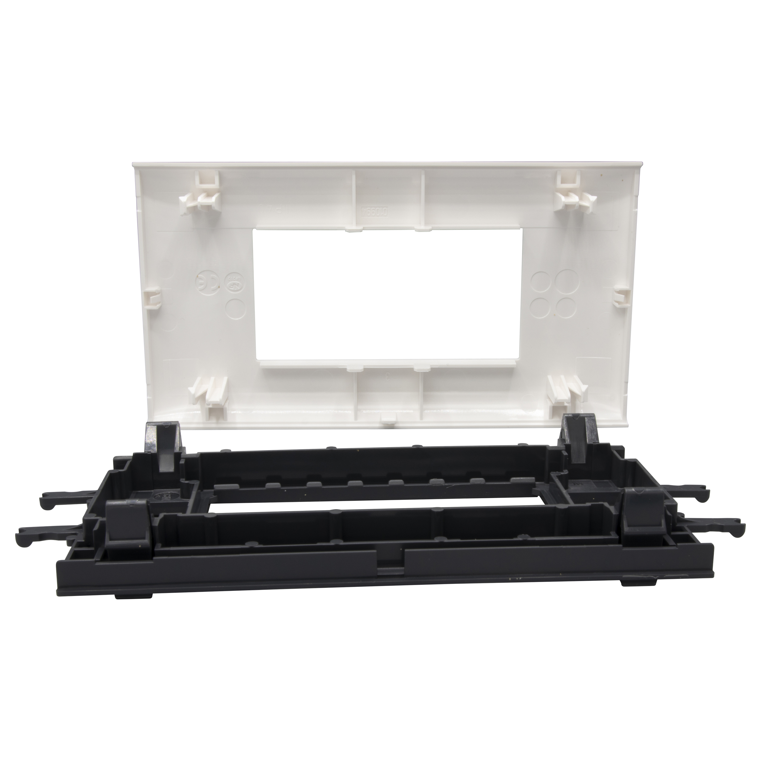 - Support pour montage de mécanisme Mosaic 4 modules sur goulotte DLP monobloc