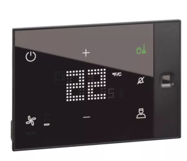 Ux One, thermostat dédié à l’hôtel pour des installations de chauffage et/ou de climatisation, permet de visualiser et de régler la température de consigne, la vitesse de ventilation, et le passage en protection thermique