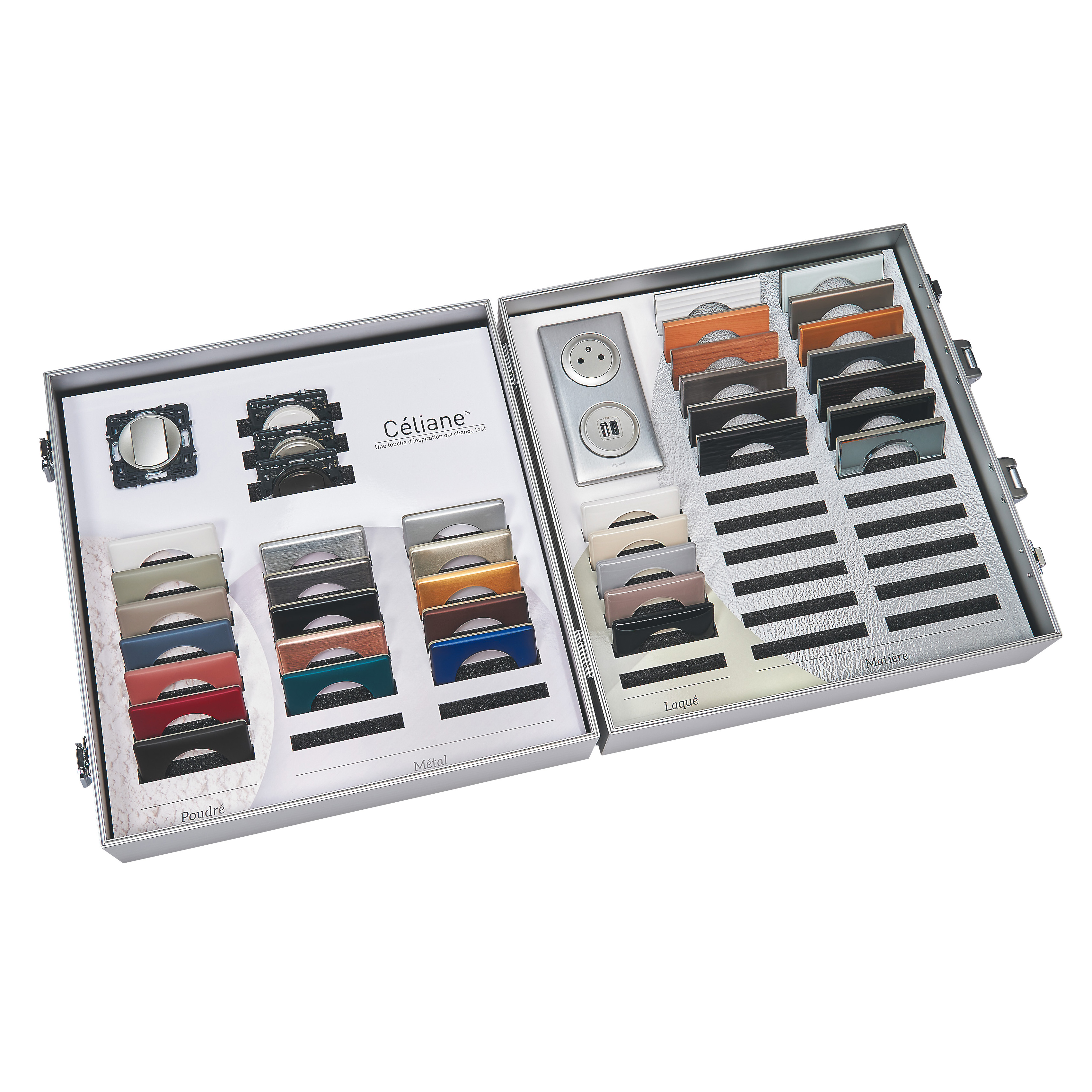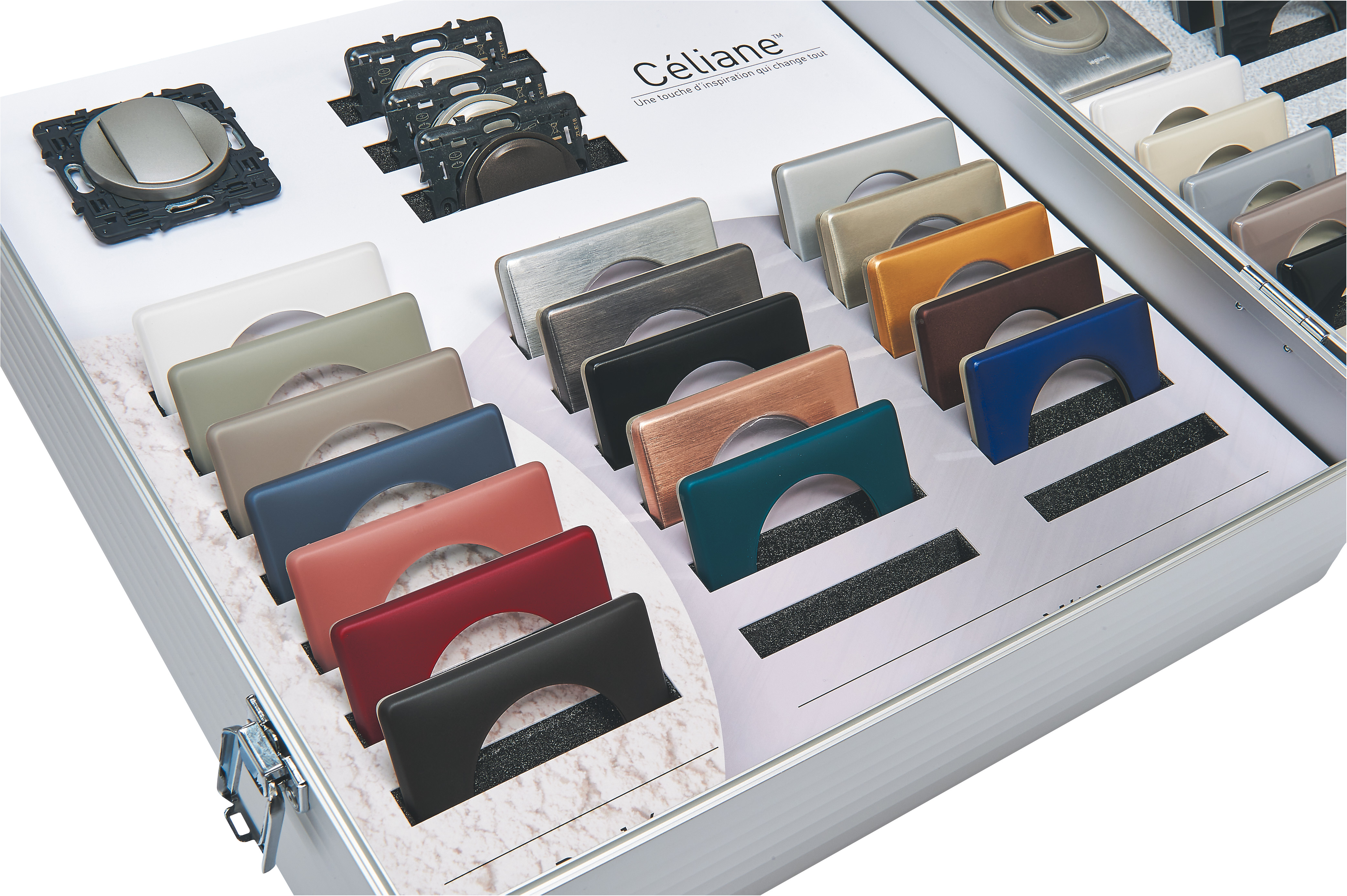 Céliane™, la gamme d'appareillage qui allie fonctions et esthétique et qui permet une multitude de combinaisons pour personnaliser un intérieur. Des fonctionnalités toujours plus innovantes comme la prise Surface, l'interrupteur Soft, le chargeur sans fil - induction, les chargeurs USB, USB-C en plus des fonctions standard. L'association de la fonction (disponible en blanc, titane ou graphite) avec des plaques de finition Laquées, Poudrées, Métal ou Matières permet des combinaisons à l'infini pour un style unique. Les plaques sont disponibles en version 1 à 4 postes pour un montage horizontal ou vertical et en version 2 et 3 postes entraxe 57 mm pour intégrer Céliane en rénovation dans des anciennes boîtes d'encastrement. Céliane se décline également en version Céliane with Netatmo pour contrôler les éclairages, volets roulants et autres appareils électriques depuis votre smartphone ou par commande vocale pour une intégration parfaite dans votre installation.