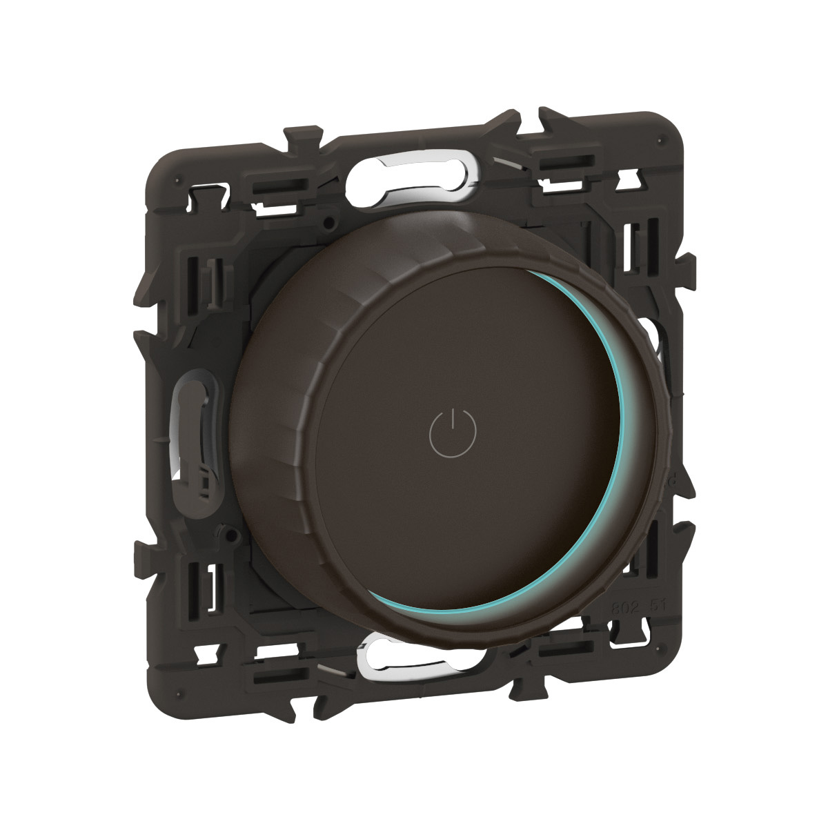Variateur connecté à type rotatif Céliane with Netatmo pour contrôler à distance la variation de l'éclairage via l'App. Home + Control ou par la voix avec un assistant vocal, à combiner avec une plaque de finition Céliane