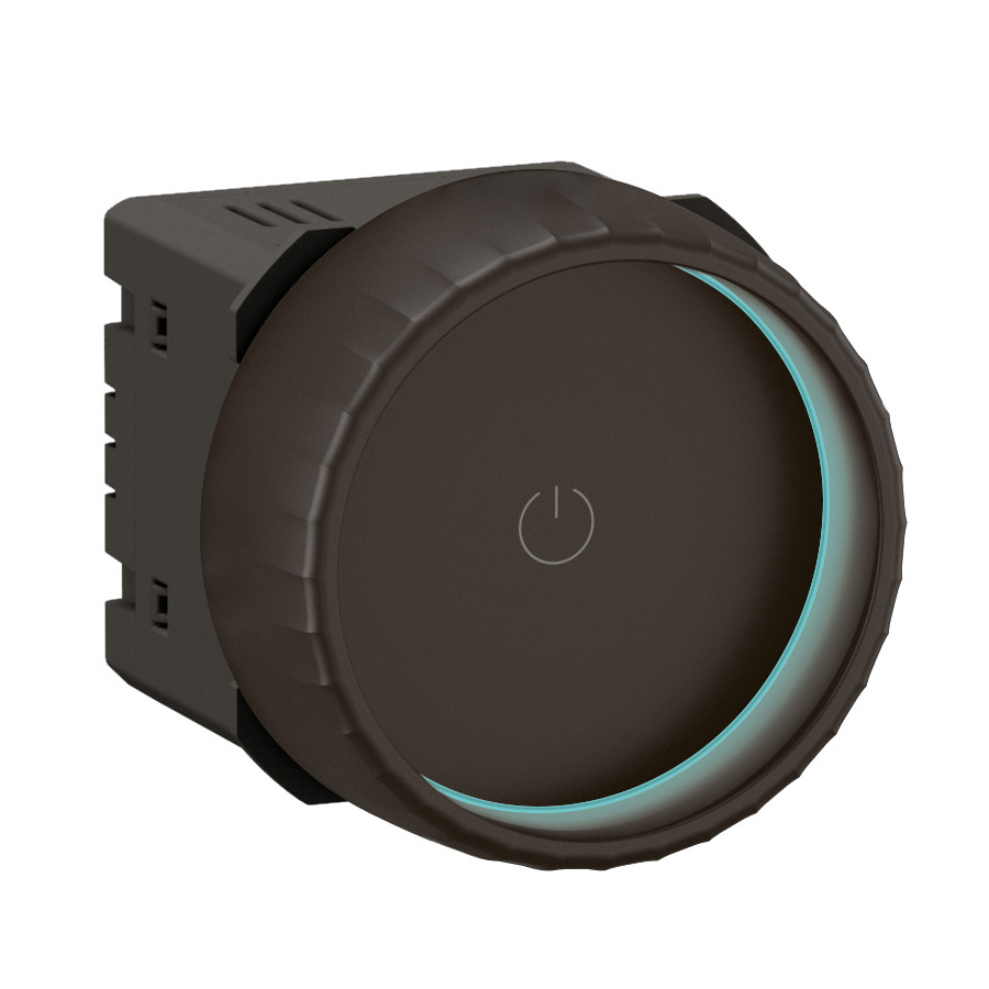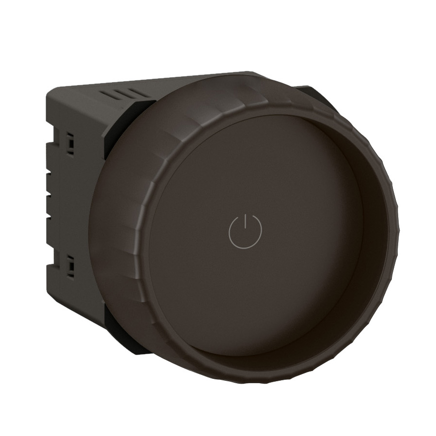 Variateur à type rotatif Céliane, livré avec enjoliveur, à compléter d'un support universel Batibox et à combiner avec une plaque de finition Céliane pour jouer sur les couleurs et les matières : mat, brillant, métal, verre, bois…