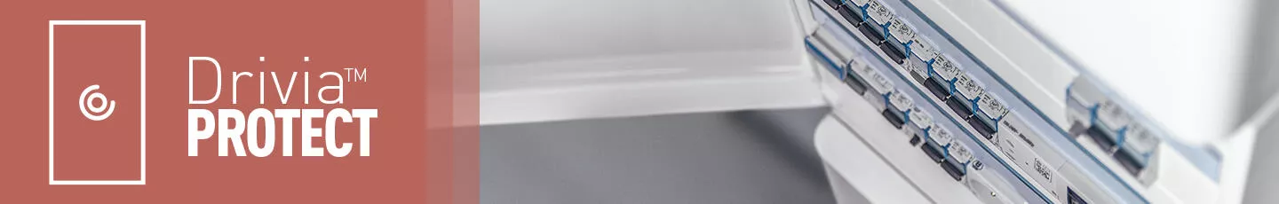 Drivia PROTECT protège les personnes, avec des protections différentielles (disponibles en type A, AC, F, B, 30 et 300 mA) en puissance limitée avec connexions automatiques adaptées aux peignes de répartition.