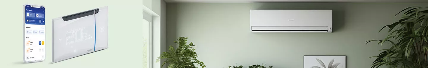 À la différence du Thermostat connecté Smarther with Netatmo qui ne permet de commander que son chauffage, le Thermostat connecté Smarther AC with Netatmo permet le pilotage du chauffage, de la climatisation et de la ventilation. Cette solution connectée est pilotable en local, via un assistant ou sur l’App Home + Control. Elle permet à vos clients de piloter leur système CVC pour améliorer leur confort intérieur.