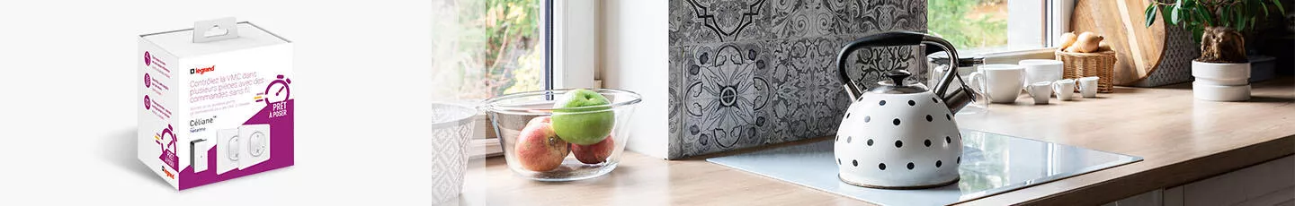 Pour piloter la ventilation depuis la pièce de son choix, et ce, sans tirer de fils, il est nécessaire d’ajouter une commande sans fil pour VMC à l’installation connectée. En effet la commande sans fil permet de contrôler le micromodule installé à côté du moteur de la VMC. Extra-plate, elle est repositionnable grâce aux adhésifs fournis et se déplace à l’envi : au mur à l’entrée de la salle de bain ou à plat sur le plan de travail de la cuisine.