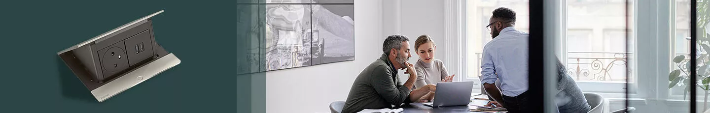 Les solutions à encastrer Incara Pop-up sont disponibles en 4, 2 x 4 et 8 modules à équiper ou pré-équipés de fonctions Mosaic courant fort ou courant faible (chargeurs USB Type A+C, prises RJ45, etc).